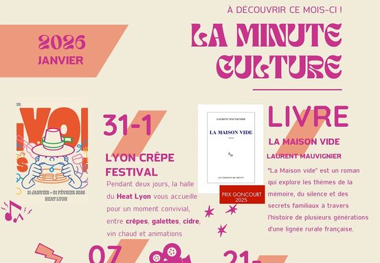 Par YAEL MONTET BERTHEAS, publié le jeudi 22 janvier 2026 08:28 - Mis à jour le jeudi 22 janvier 2026 08:39Les éclaireurs et éclaireuses de la culture du lycée vous proposent leur newsletter "La minute Culture" pour le mois de janvier 2026. -