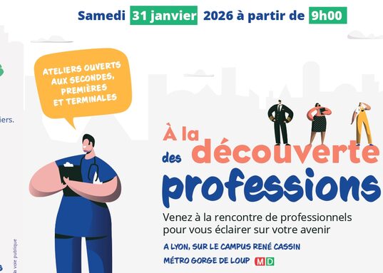 Par YAEL MONTET BERTHEAS, publié le vendredi 23 janvier 2026 09:21 - Mis à jour le vendredi 23 janvier 2026 09:21Samedi 31 janvier 2026 au Campus René Cassin (Lyon 9 - métro Gorge de Loup) se tiendra le forum "A la découverte des professions" qui vise à alimenter la réflexion des lycéens sur leur avenir. -