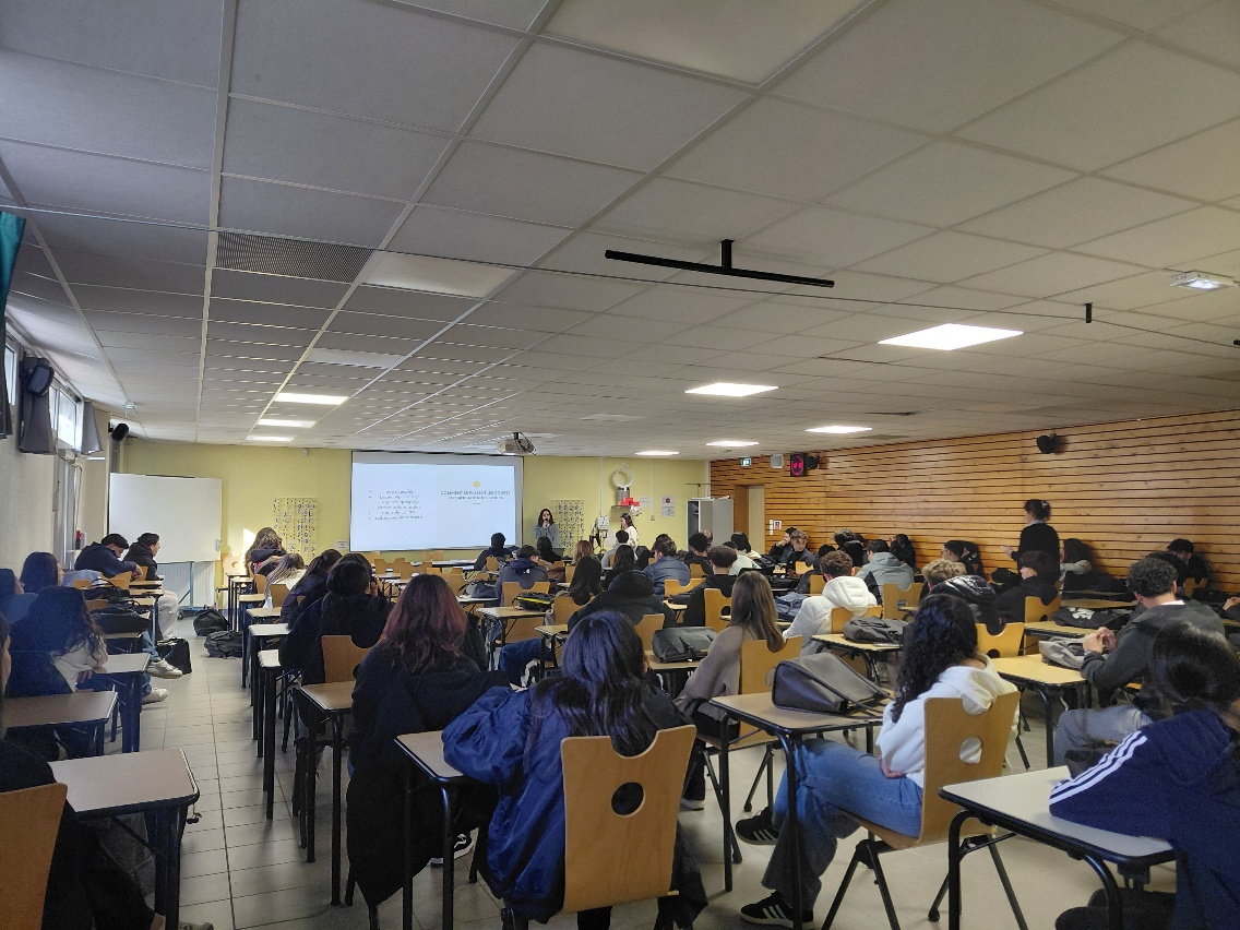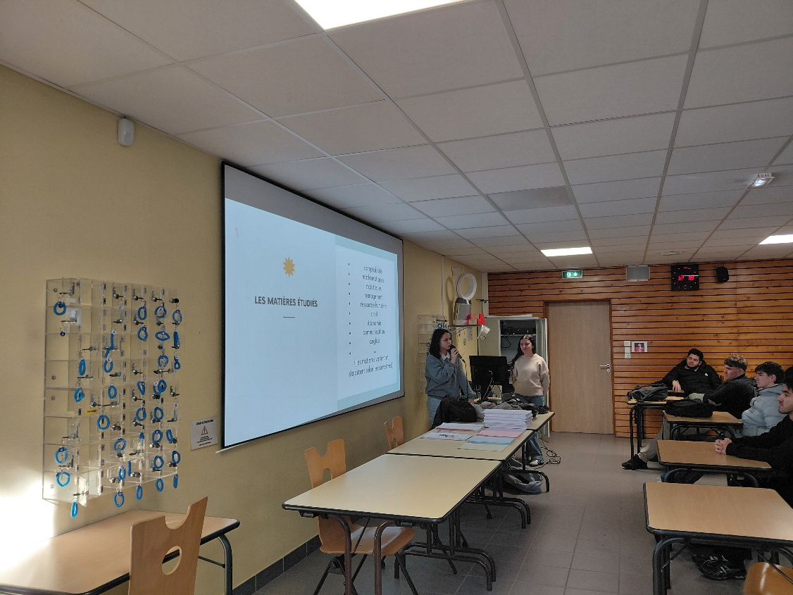 Parmi les intervenantes, les élèves ont pu échanger avec une ancienne élève de STMG du lycée, dont le témoignage a été précieux pour éclairer leurs choix d'orientation et confirmer les débouchés possibles après le baccalauréat. Elle a permis aux élèves de mieux comprendre les attentes de cette formation.